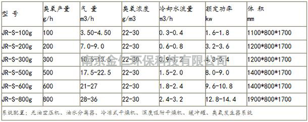 氧氣源臭氧發(fā)生器參數(shù)列表